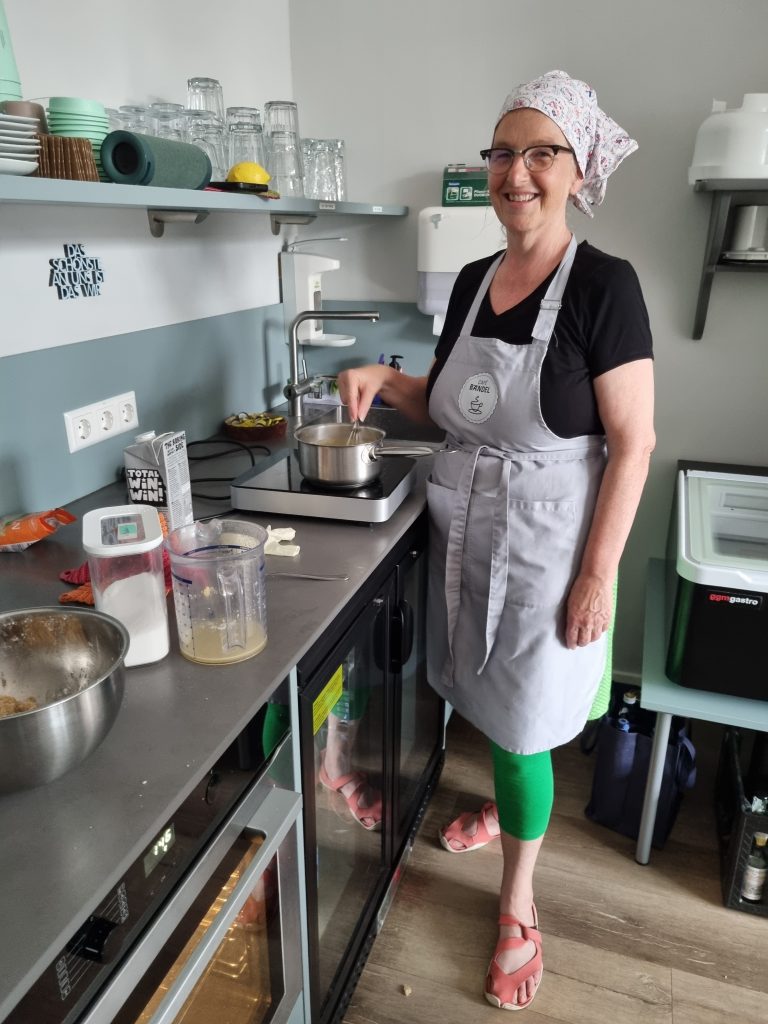 Sie sind für die Gäste meistens unsichtbar, aber ihre leckeren Kuchen schmecken allen: 15 ehrenamtliche Bäckerinnen backen außerhalb der Öffnungszeiten für das Bändel. Eine davon ist Julika Kühner, die wir hier stellvertretend vorstellen.