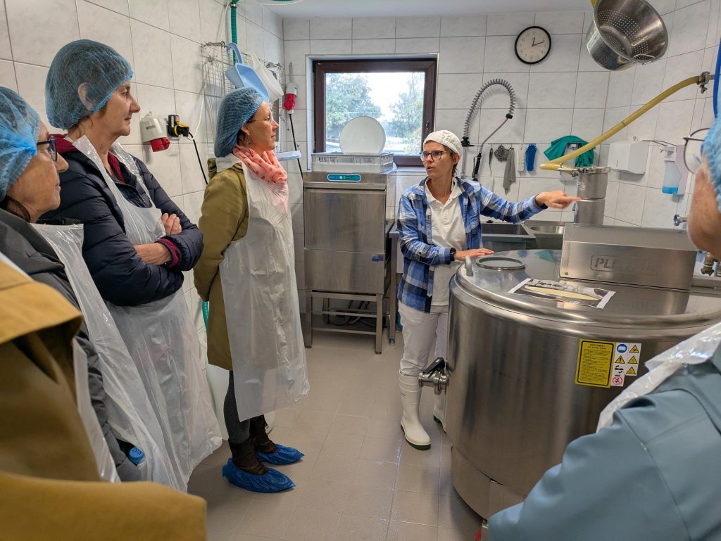 Mit Häubchen und Überschuhen besuchen wir die Käserei, Elisabeth Joswiak erklärt auf wunderbarer Weise, wie es zu den unterschiedlichen Produkten aus der eigenen Bio-Milch kommt: Joghurt, Quark, Schichtkäse, Frischkäse, Hirtenkäse… Ganz herzlichen Dank dafür! Dann noch ein Rundgang mit Susanne über den Hof, zu den Tieren, ein bisschen Ferkelstreichen, die Zeit geht viel zu schnell vorbei!